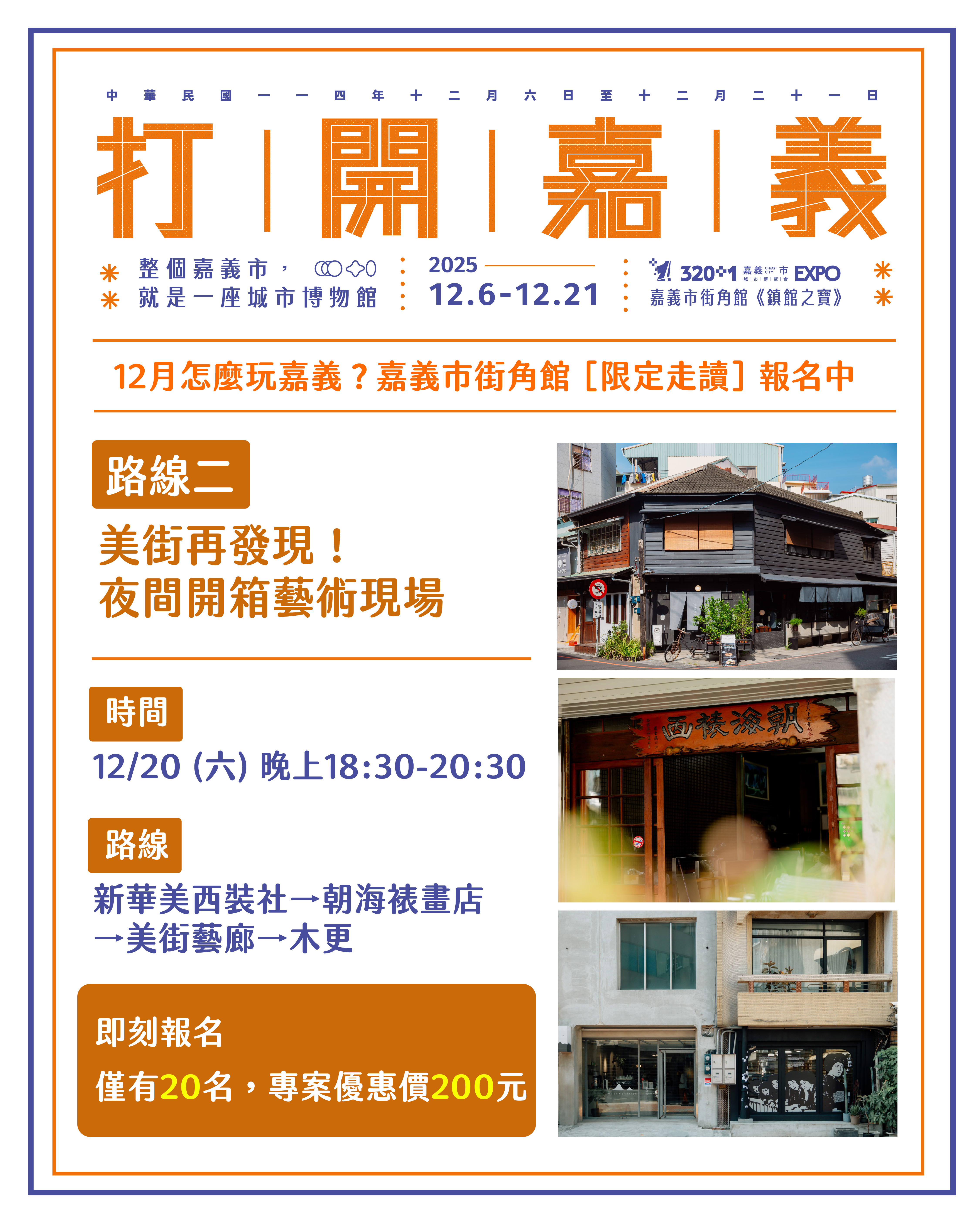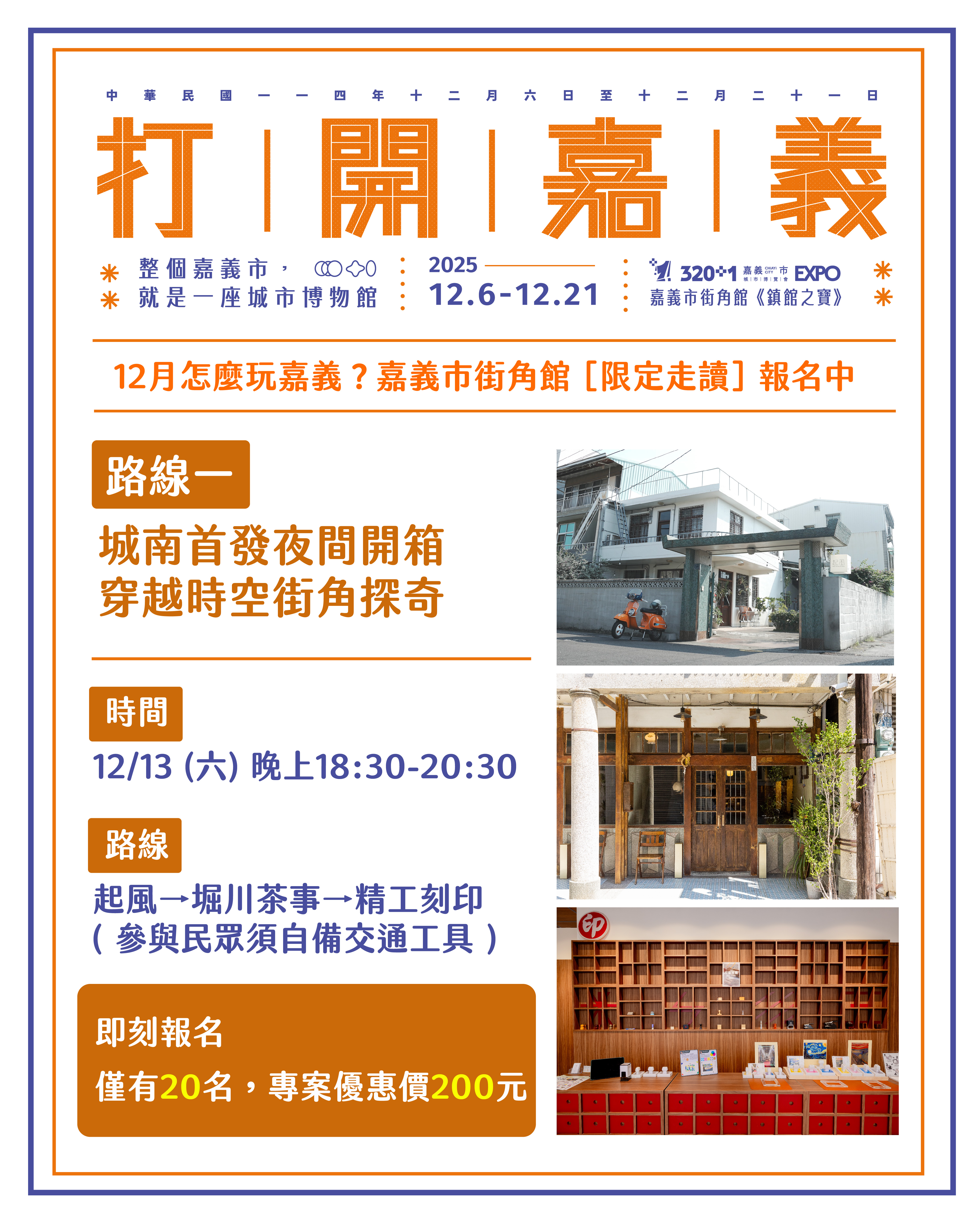 「打開二通—嘉義市二通生活圈街角館成果展」於11月25日至12月10日辦理周末走讀