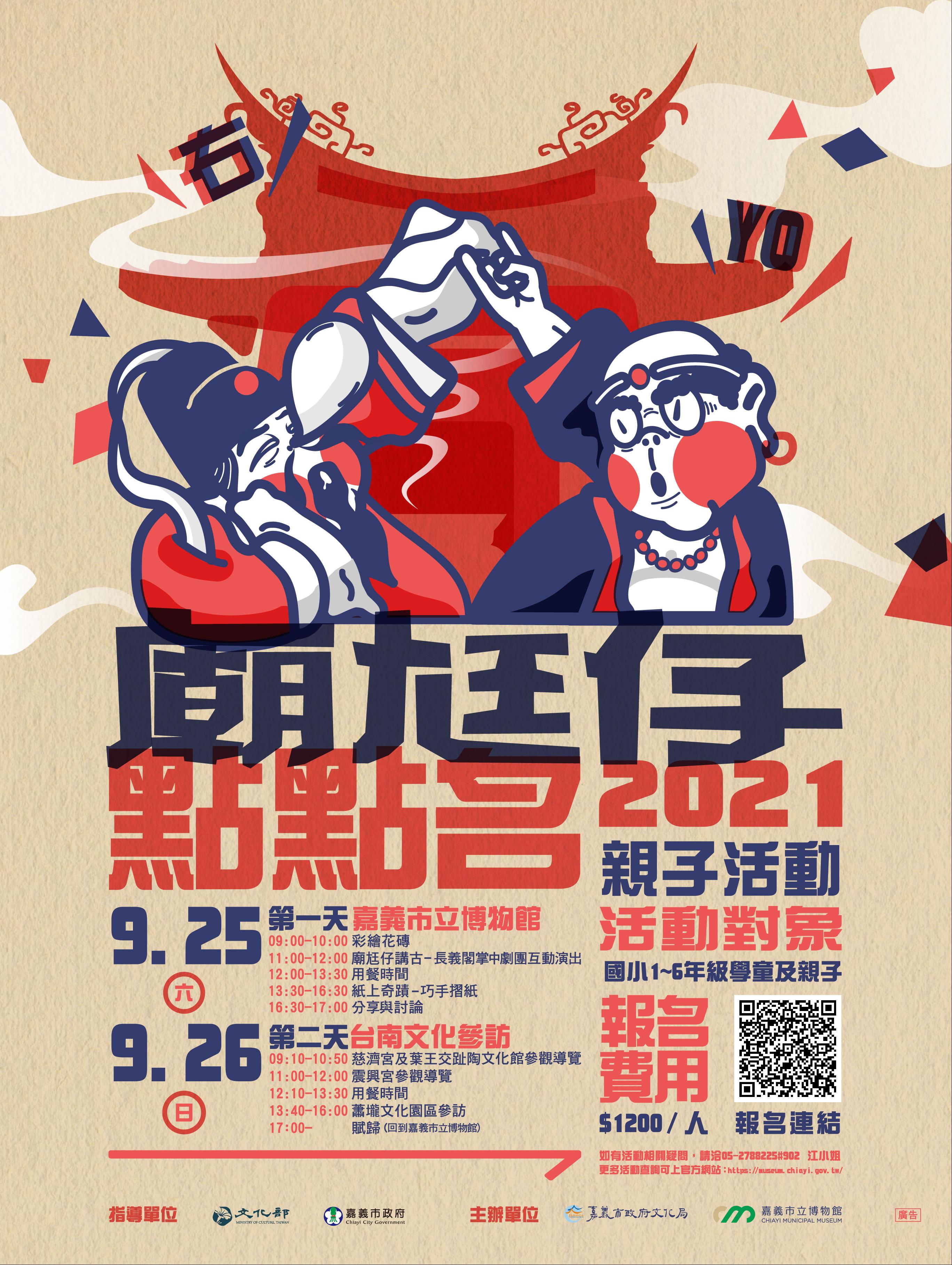 本活動將帶領參加者認識嘉義市交趾陶館,並將視野擴大至鄰近地區,帶大家前往目前尚保存有交趾陶開基祖葉王作品的臺南震興宮、慈濟宮、葉王交趾陶文化館及蕭壠文化園區實地參訪,並透過布袋戲偶的戲劇解說,結合交趾陶館內容,以及親子手作體驗,讓民眾透過手作體驗了解交趾陶題材之美。